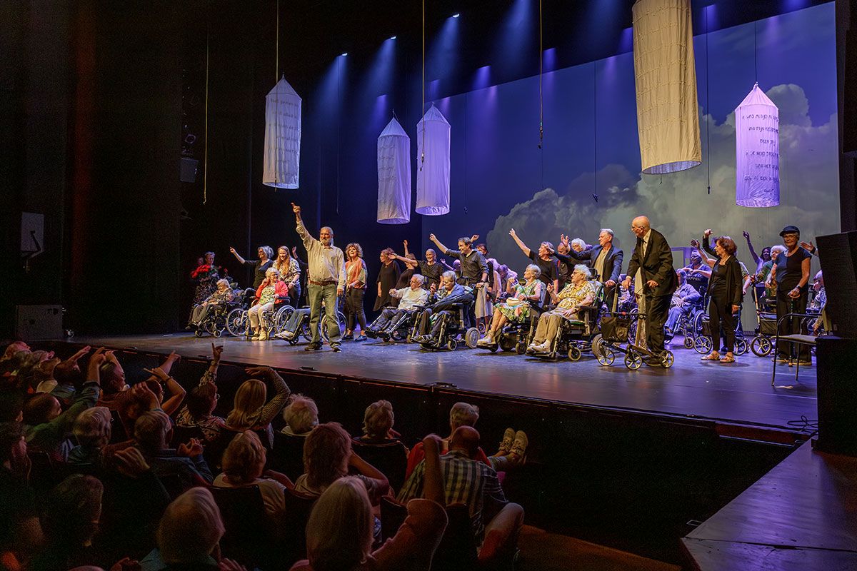 Een ode aan de kracht van fantasie, vriendschap, muziek en plezier. Een voorstelling die je meeneemt naar een wereld zonder beperkingen, waar ouderdom oplost in levenslust en je samen op reis gaat met andere dromers.