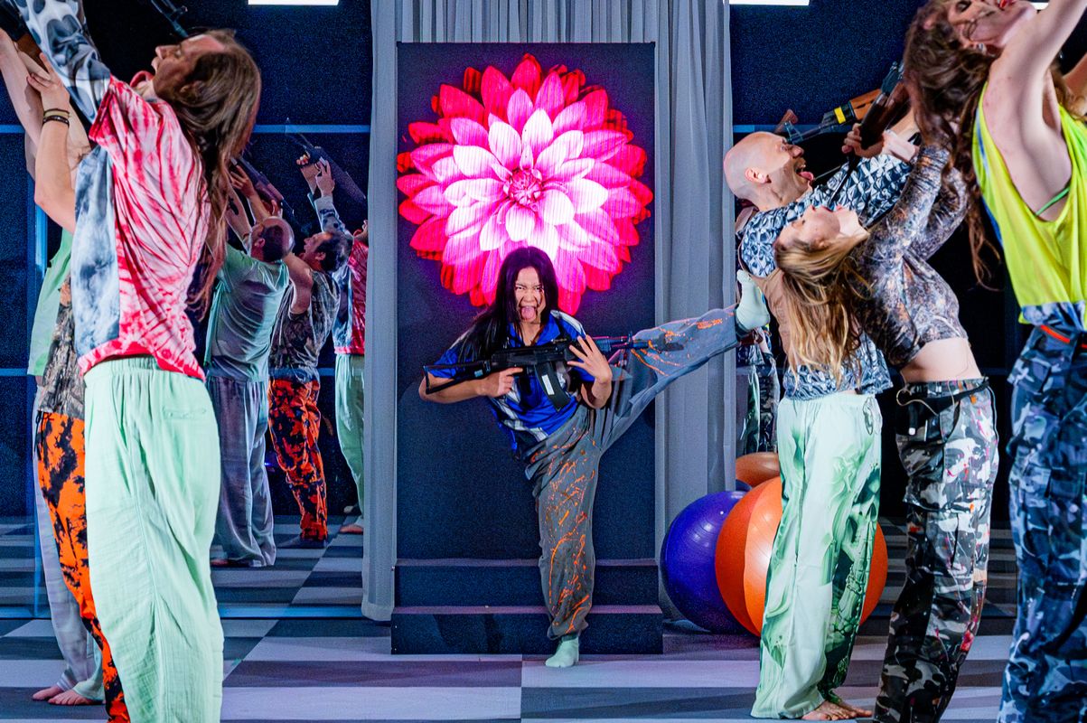 Een gewapende yoga-groepering houdt hun geradicaliseerde achterban een spiegel voor: kunnen we onze idealen ook zonder het gebruik van wapens bereiken? Het theaterpubliek wordt urenlang gegijzeld door verbeelding en overmand door gewelddadig teksttoneel, maar verlaat de zaal geestelijk bevrijd en fysiek gelouterd. Om het 21-eeuwse leven weer aan te kunnen. Gandhi speelt slechts een bijrol; de voorstelling is net zo losjes rond zijn biografie gedrapeerd als de doeken om zijn lendenen.