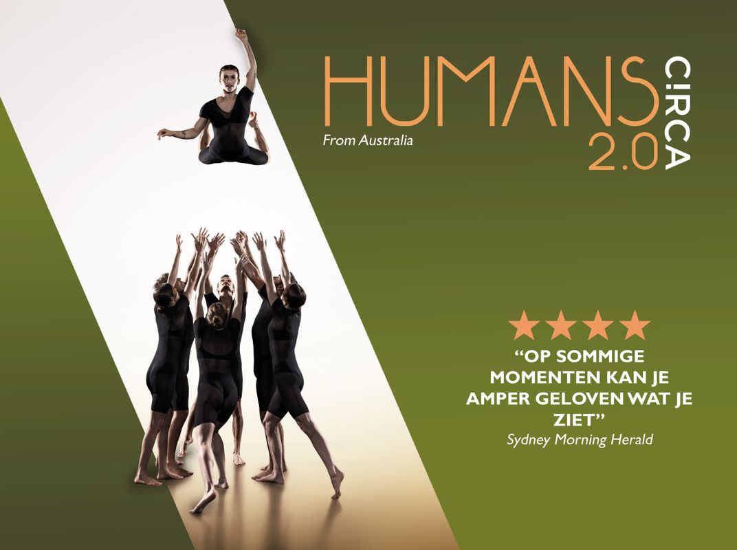 Humans 2.0 is een opdracht van het Mondavi Center, UC Davis. Het is het volgende hoofdstuk van Circa’s internationaal befaamde Humans-reeks. Een strak vormgegeven choreografie van lichamen, pulserend op muziek van componist Ori Lichtik in de dramatische belichting van Paul Jackson. Humans 2.0, gecreëerd door circusvisionair Yaron Lifschitz, is een visueel spektakel, geschikt voor jong en oud.