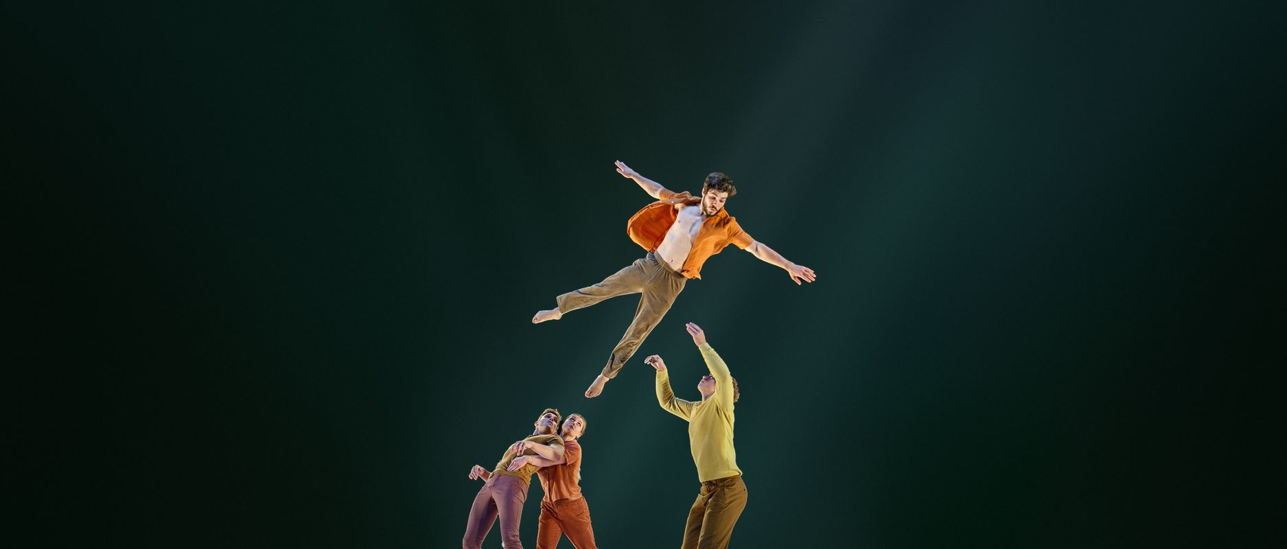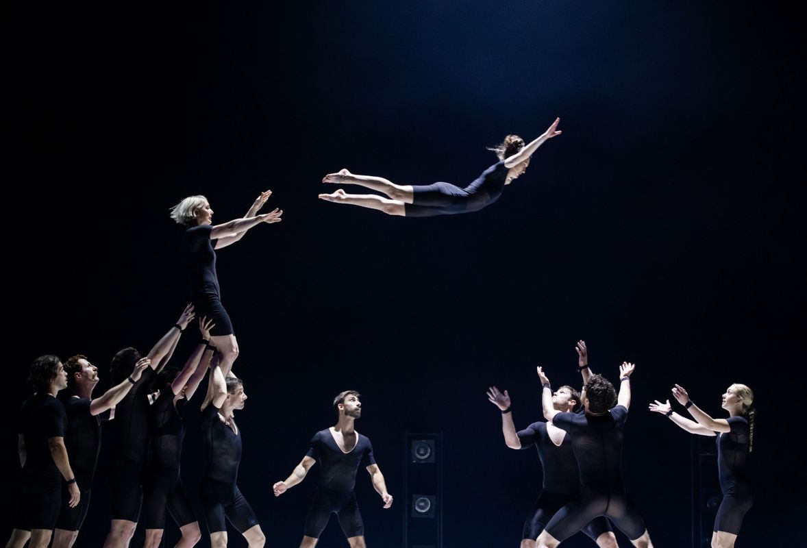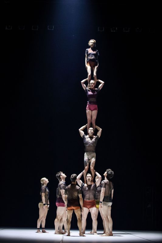 Tien lichamen verschijnen in een lichtflits. Ze bewegen een vluchtig moment in harmonie en dalen dan af in een kronkelige trance. Menselijke torens groeien en vallen uiteen, lichamen springen op en worden gevangen. De fysieke grenzen worden tot het uiterste verlegd. Kunnen we ooit een perfect evenwicht vinden of is meebewegen met de voortdurende verandering de enige weg vooruit?