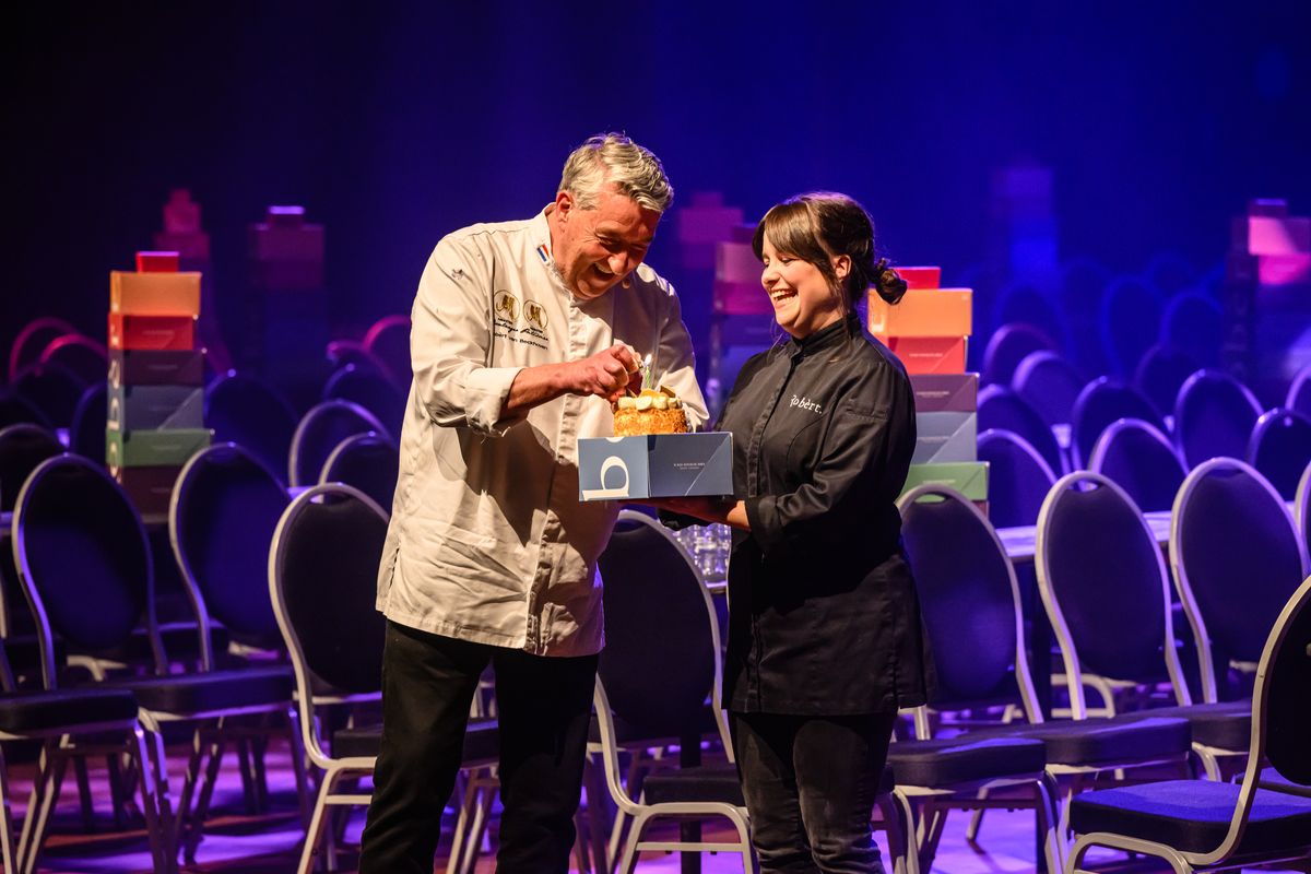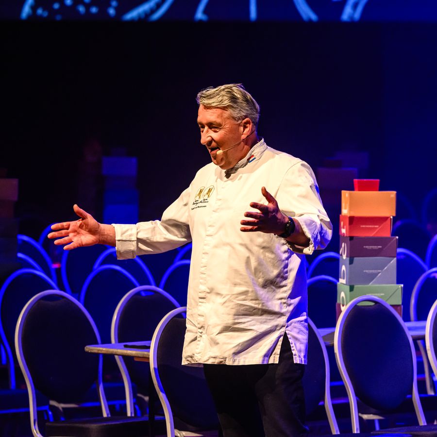Naast zijn bijzondere vriendelijkheid is Robèrt van Beckhoven een vakman die je met zijn verhalen en anekdotes over het bakkersvak volledig in zijn greep heeft. In de voorstelling Meesterlijk Feest! serveert hij het publiek – letterlijk aan zijn tafel – een proeverij van grondstoffen en signature producten, gepresenteerd met mooie verhalen en een theatraal sausje. Van oliebollen en paaseitjes tot oranje tompoezen, kerststollen en een prachtige bruidstaart. Want… het is altijd feest als de bakker zijn meesterwerk heeft afgeleverd!