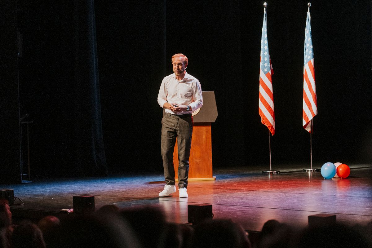 Raymond Mens is Amerika-expert, politicoloog en vaste Amerika-duider bij het populaire tv-programma VI. Hij schreef het boek Nieuws als Wapen en host de podcast ‘Amerika in 15 minuten.’ Zijn vorige theatercollege Lange Leve Amerika trok ruim 17.000 bezoekers en werd lovend ontvangen.