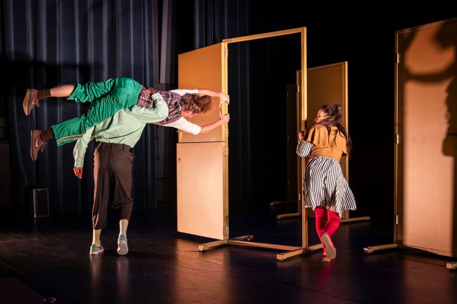 The100HandsEn humorvolle en speelse dansvoorstelling over de poging om weg te gaanzo 22 feb ’26Drie verschillende mensen dwalen door een landschap van deuren, waarachter steeds een andere wereld schuil gaat. Maar hoe vaak ze ook weggaan, het lijkt wel of ze altjd weer bij elkaar en het publiek uitkomen.